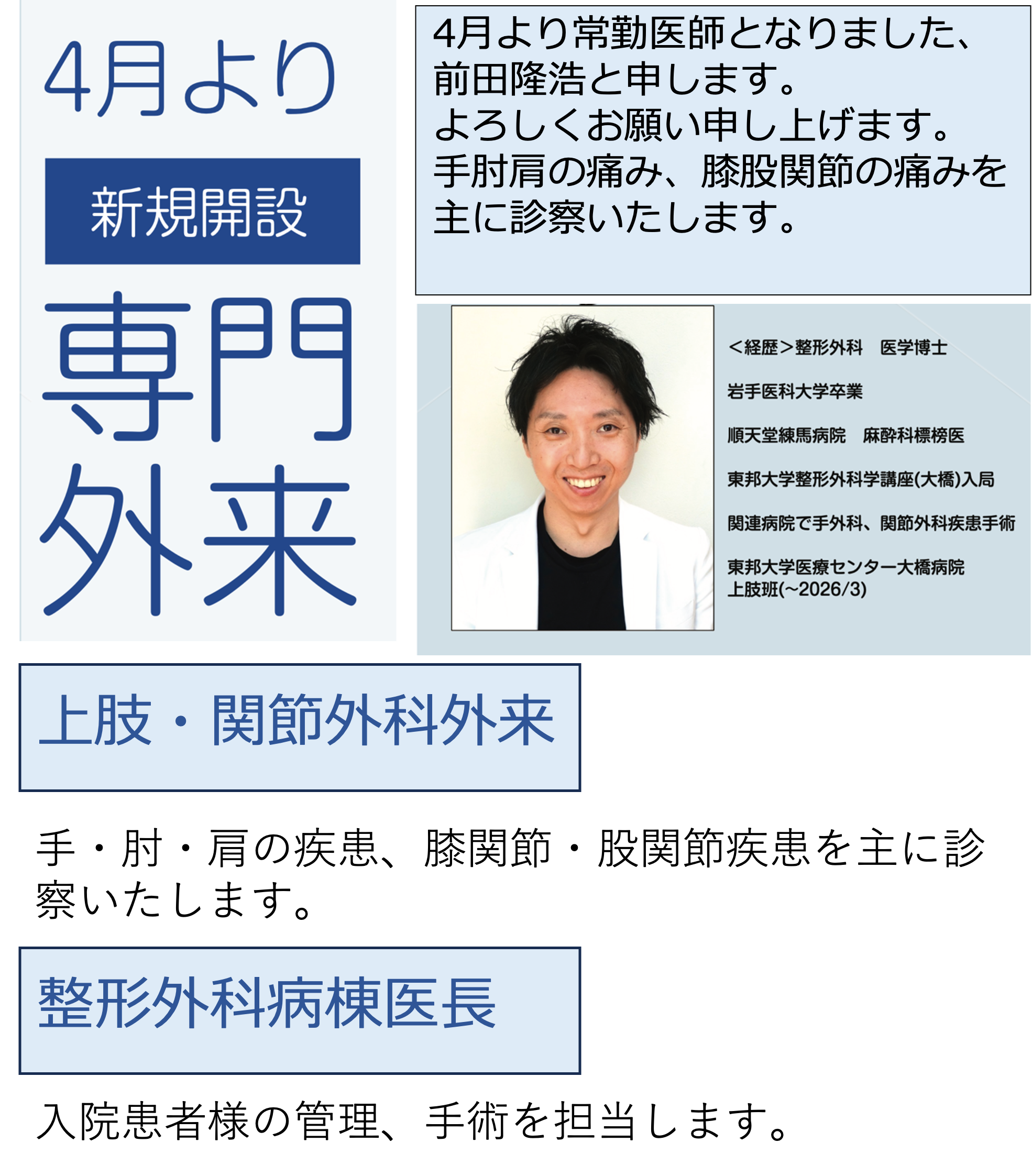 前田隆浩先生 常勤医師就任のお知らせ